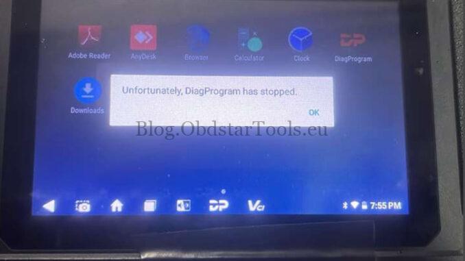 Issue: The OBDSTAR P50 Airbag Reset Tool displays the error message: “Unfortunately, DiagProgram has stopped.”