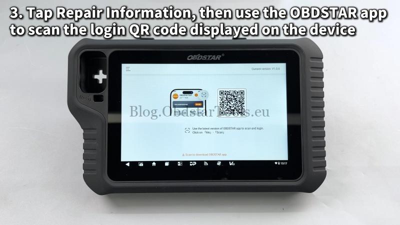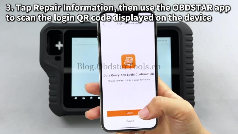 - On your OBDSTAR device, open the “Repair Information” section. A login QR code will be displayed.