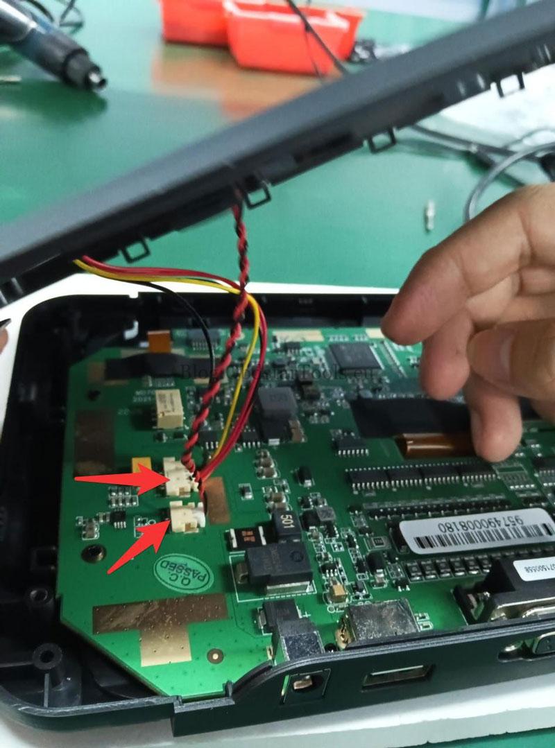 - Unplug the two wiring ports as shown.