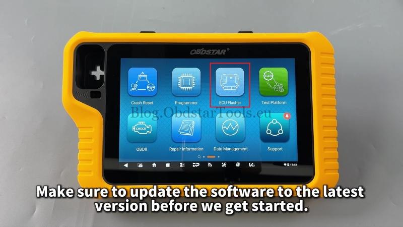 Before starting, ensure your software is updated to the latest version via the ECU Flasher menu.