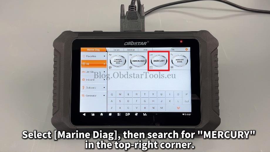 Plug the device into the boat’s diagnostic port. Navigate to: Marine Diag > MERCURY > Auto Scan.