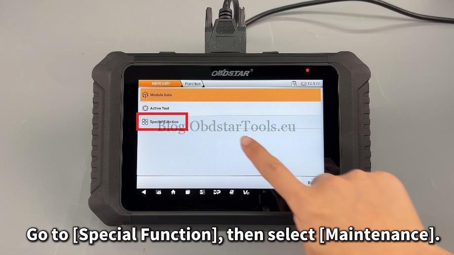 Select Special Function, then tap Maintenance. Choose the specific engine system (e.g., Standard) that requires the reset.