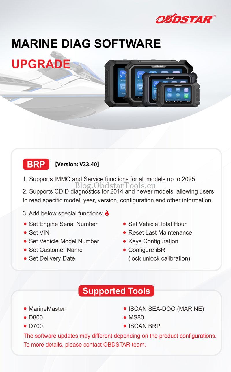 OBDSTAR has released a major software update specifically for BRP watercraft. This update brings advanced IMMO and diagnostic capabilities to the MarineMaster, KEYMASTER G3, D800, D700, etc. Ensuring full compatibility with models up to 2025.