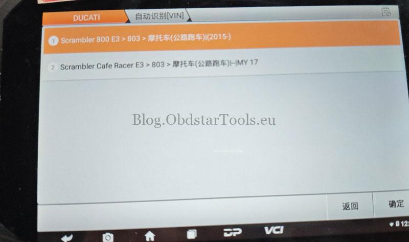 - Try to calibrate via the first option: Scrambler 800 E3 > 803 > Motorcycle 2015-(User previously selected the 2nd option)