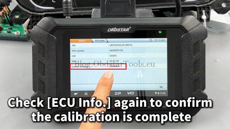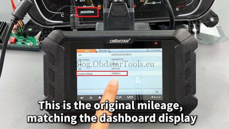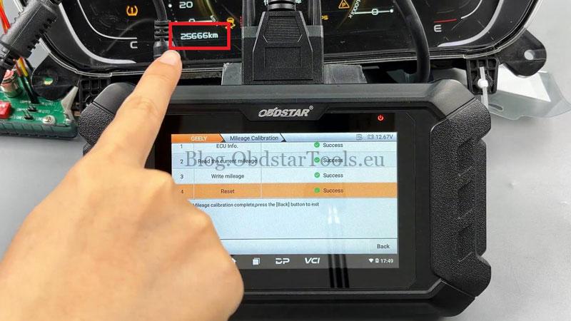 This guide explains how to perform mileage calibration on a GEELY R7F701412 dashboard using the OBDSTAR ODO Master Tool.